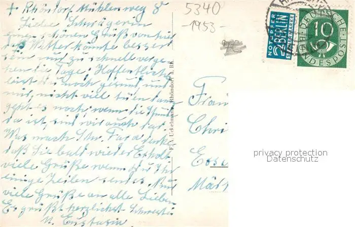 Rhoendorf Lehrerheim mit Haus Adenauer Rhoendorf postalisch gelaufen 1953 Erhaltung siehe scans [WerneD78] WernPID7