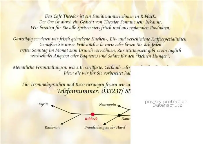 Ribbeck_Nauen Cafe Theodor Gaststube Terrasse Ribbeck Nauen postalisch nicht gelaufen nach 1965 Werbekarte (keine Postkarte) Erhaltung siehe scans [WerneD78] Werbekarte (keine Postkarte) WernPID7