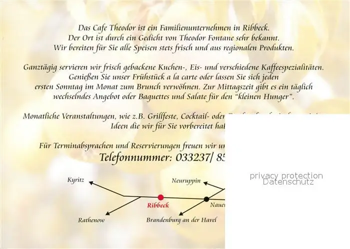 Ribbeck_Nauen Cafe Theodor Gaststube Terrasse Ribbeck Nauen postalisch nicht gelaufen nach 1965 Werbekarte (keine Postkarte) Erhaltung siehe scans [WerneD78] Werbekarte (keine Postkarte) WernPID7