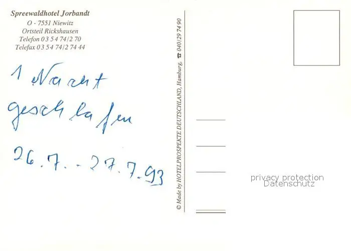 Rickshausen_Niewitz Spreewaldhotel Jorbandt Kirche Wasserstrasse postalisch nicht gelaufen 1993 Erhaltung siehe scans [FriedD77] Frierer