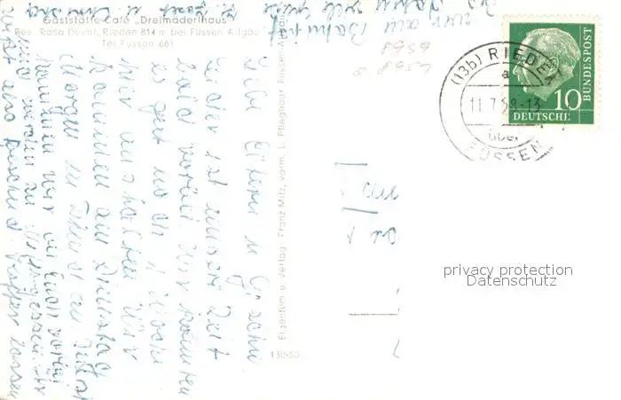 Rieden_Allgaeu Gaststaette Dreimaederlhaus Rieden Allgaeu postalisch gelaufen 1958 Erhaltung siehe scans [WerneD78] WernPID7