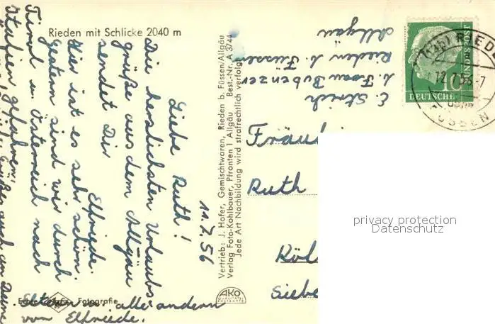 Rieden_Allgaeu Kirche Panorama Schlicke Rieden Allgaeu postalisch gelaufen 1956 Erhaltung siehe scans [KathaD81] Kathoren