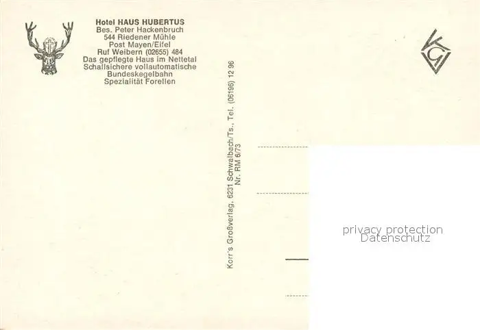 Riedener_Muehlen Hotel Haus Hubertus Fliegeraufnahme Riedener_Muehlen postalisch nicht gelaufen nach 1965 Erhaltung siehe scans [WerneD78] WernPID7