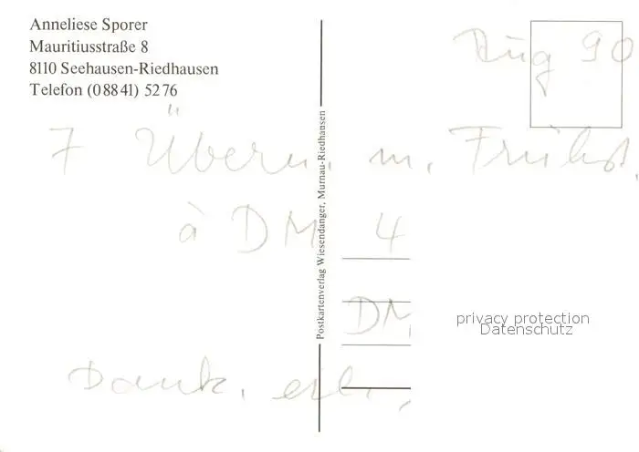 Riedhausen_Staffelsee Anneliese Sporer Riedhausen_Staffelsee postalisch nicht gelaufen 1990 Erhaltung siehe scans [WerneD78] WernPID7