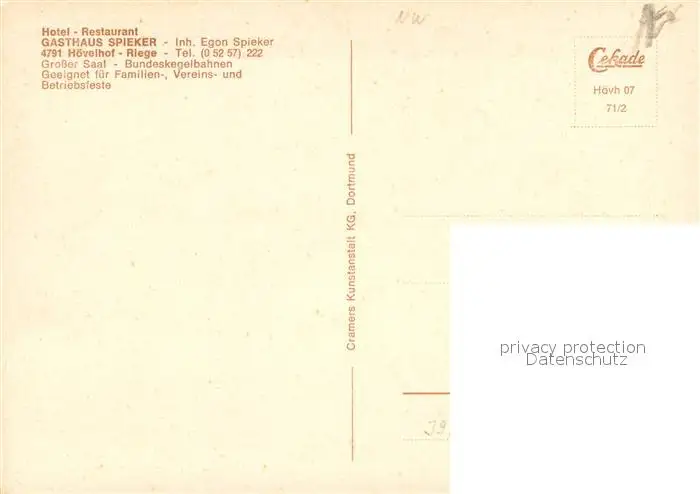 Riege_Hoevelhof Gasthaus Spieker Bar Gaststube Festsaal Riege Hoevelhof postalisch nicht gelaufen nach 1965 Erhaltung siehe scans [WerneD78] WernPID7
