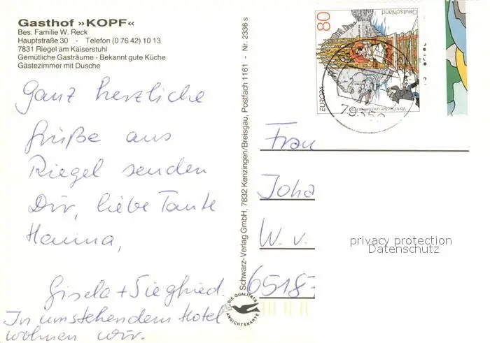Riegel_Kaiserstuhl Gasthof Kopf Sparkasse Riegel_Kaiserstuhl postalisch gelaufen nach 1965 Erhaltung siehe scans [PaolaD17] PaolPID1