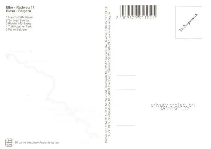 Riesa Sachsen Elbe Radweg 11 ueber Strehla Muehlberg nach Belgern Schloss Kloster Park Faehre Landkarte Jahnishausen postalisch nicht gelaufen 2009 Erhaltung siehe scans [FriedD77] Frierer