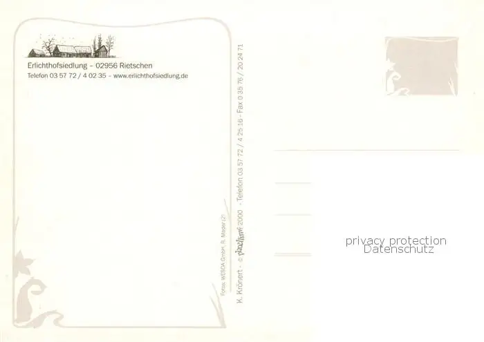 Rietschen Erlichthofsiedlung Rietschen postalisch nicht gelaufen nach 1965 Erhaltung siehe scans [FriedD77] Frierer