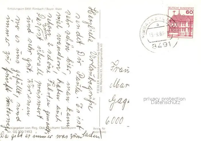 Rimbach_Bayrischer_Wald Kategorie Alte Ansichtskarten Postkarten bx54667 Rimbach_Bayrischer_Wald Fliegeraufnahme Rimbach_Bayrischer_Wald postalisch gelaufen 1983 Erhaltung siehe scans [NatalD47]