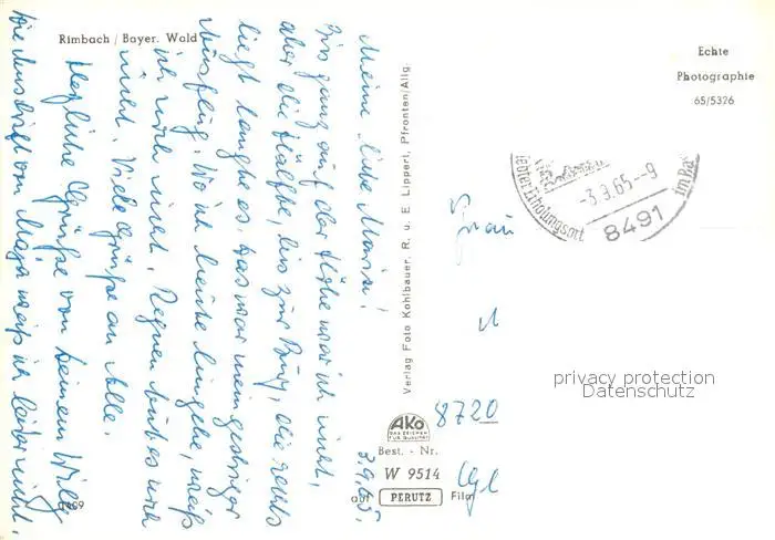 Rimbach_Bayrischer_Wald Kategorie Alte Ansichtskarten Postkarten bx54672 Rimbach_Bayrischer_Wald Sender Burgstall Rimbach_Bayrischer_Wald postalisch gelaufen 1965 Erhaltung siehe scans [NatalD47]