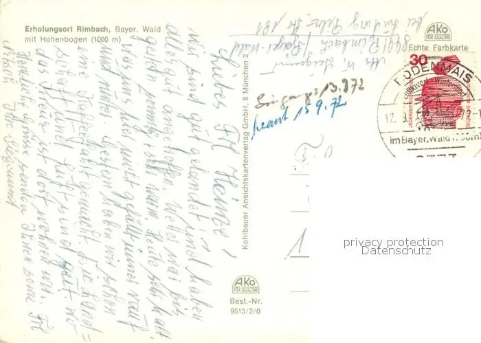 Rimbach_Bayrischer_Wald Kategorie Alte Ansichtskarten Postkarten bx87697 Rimbach_Bayrischer_Wald mit Hohenbogen Rimbach_Bayrischer_Wald postalisch gelaufen 1972 Erhaltung siehe scans [LiesaD40]
