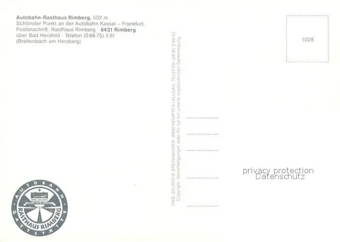 Rimberg_Bad_Hersfeld Autobahn Rasthaus Rimberg Gastraeume Zimmer Rimberg_Bad_Hersfeld postalisch nicht gelaufen nach 1965 Erhaltung siehe scans [WerneD78] WernPID7
