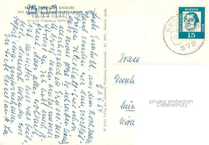 Rimberg_Schmallenberg Hotel Pension Knoche Rimberg_Schmallenberg postalisch gelaufen 1964 Erhaltung siehe scans [FriedD77] Frierer
