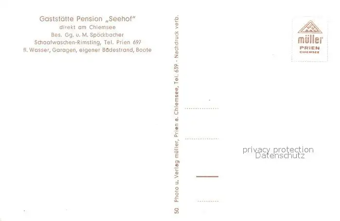 Rimsting Gaststaette Pension Seehof Rimsting postalisch nicht gelaufen 1921-1965 Erhaltung siehe scans [KathaD81] Kathoren