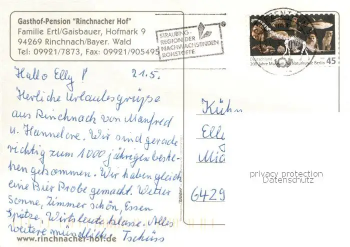 Rinchnach Gasthof Pension Rinchnacher Hof Restaurant Panorama Rinchnach postalisch gelaufen 2010 Erhaltung siehe scans [FriedD77] Frierer