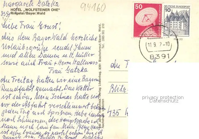 Ringelai Hotel Wolfsteiner Ohe Restaurant Hallenbad Ringelai postalisch gelaufen 1982 Erhaltung siehe scans [FriedD77] Frierer