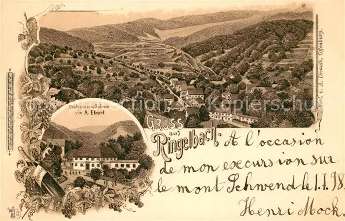 Ringelbach Oberkirch Kategorie Alte Ansichtskarten Postkarten bx56348 Ringelbach_Oberkirch Gasthaus zum Salmen Ringelbach Oberkirch postalisch gelaufen 1898 Erhaltung siehe scans [NatalD47]