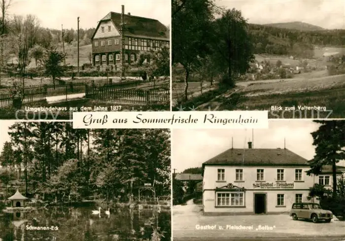 Ringenhain Umgebindehaus 1837 Schwanenteich Gasthof Landschaftspanorama Valtenberg Ringenhain postalisch gelaufen 1970 Erhaltung siehe scans [FriedD77] Frierer