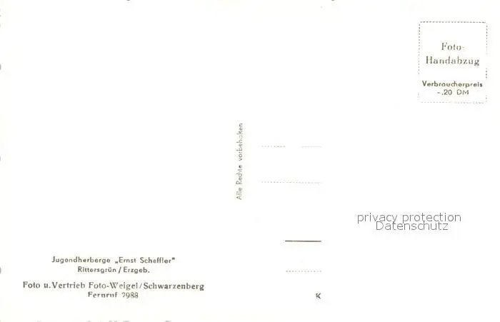 Rittersgruen Jugendherberge Ernst Scheffler Handabzug Rittersgruen postalisch nicht gelaufen 1964 Erhaltung siehe scans [FriedD77] Frierer