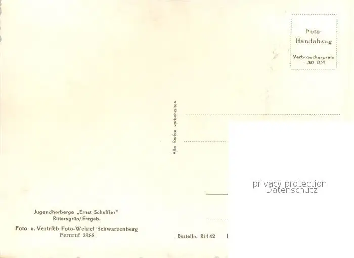 Rittersgruen Jugendherberge Ernst Scheffler Rittersgruen postalisch nicht gelaufen 1962 Erhaltung siehe scans [FriedD77] Frierer