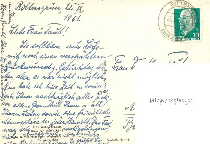 Rittersgruen Panorama Blick von Antonshoehe Rittersgruen postalisch gelaufen 1961 Erhaltung siehe scans [FriedD77] Frierer
