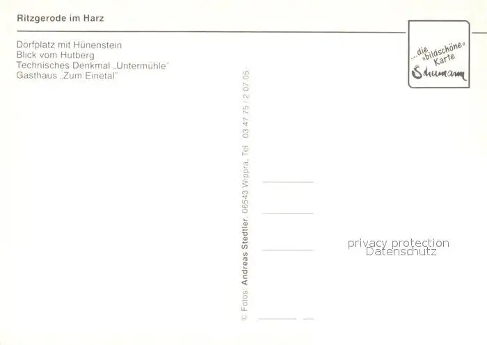 Ritzgerode Huenenstein Hutberg Untermuehle Ritzgerode postalisch nicht gelaufen nach 1965 Erhaltung siehe scans [NatalD47] NataID47