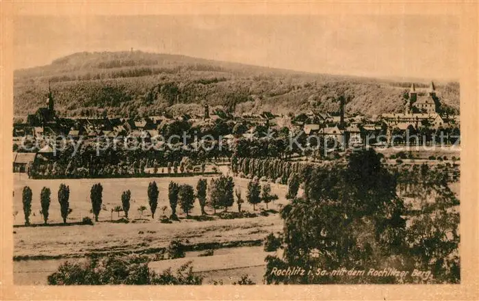 Rochlitz_Sachsen Panorama mit Rochlitzer Berg Rochlitz Sachsen postalisch nicht gelaufen 1921-1965 Erhaltung siehe scans [FriedD77] Frierer