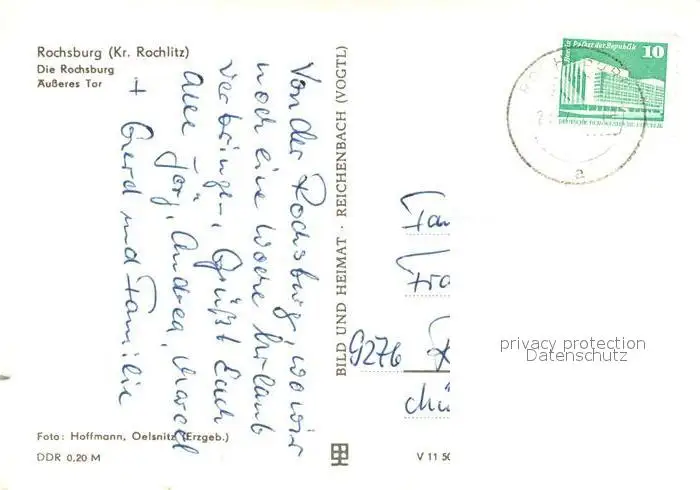 Rochsburg aeusseres Tor der Rochsburg Rochsburg postalisch gelaufen 1980 Erhaltung siehe scans [FriedD77] Frierer