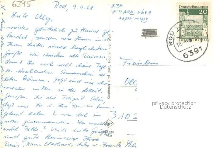 Rod_Weil Teilansicht Rod_Weil postalisch gelaufen 1968 Erhaltung siehe scans [LiesaD40] LiesID40