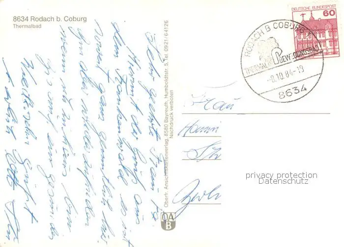 Rodach_Bad Thermalbad Rodach Innen- und Aussenansicht Rodach_Bad postalisch gelaufen 1984 Erhaltung siehe scans [LiesaD40] LiesID40