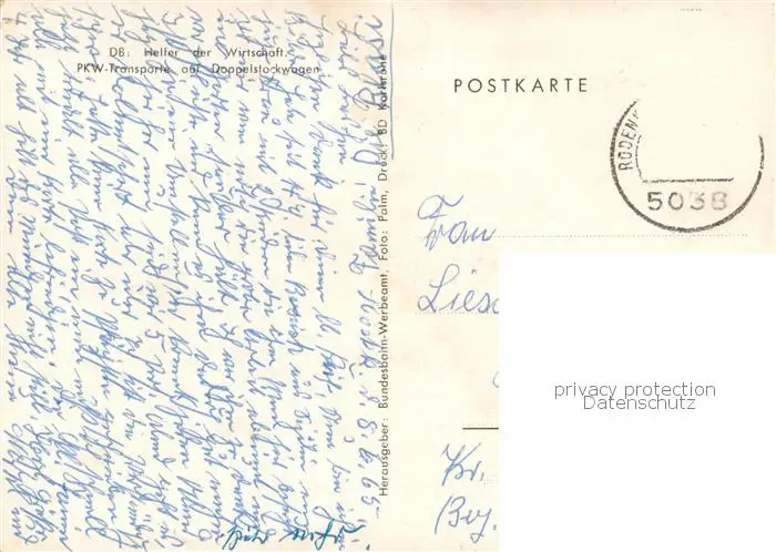Rodenkirchen_Koeln PWK Transporte auf Doppelstockwagen der Deutschen Bahn Rodenkirchen Koeln postalisch gelaufen 1965 Erhaltung siehe scans [WerneD78] WernPID7