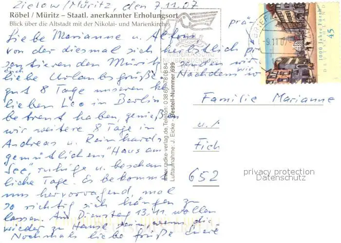 Roebel_Mueritz Fliegeraufnahme Nikolai- Marienkirche Roebel Mueritz postalisch gelaufen 2007 Erhaltung siehe scans [NatalD47] NataID47