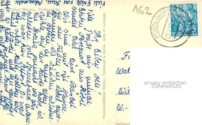 Roebel_Mueritz Kirche Panorama Roebel Mueritz postalisch gelaufen 1958 Erhaltung siehe scans [KathaD81] Kathoren