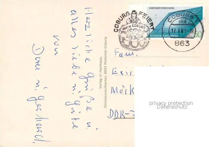 Roedental Schloss Rosenau Happachsmuehle Kloster Moenchroeden Altenwohnheim Hallenbad Blick vom weissen Huegel Roedental postalisch gelaufen 1981 Erhaltung siehe scans [FriedD77] Frierer