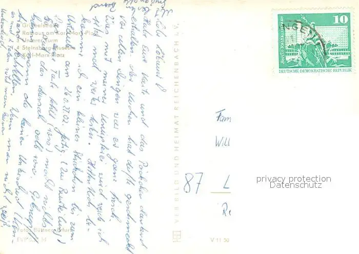 Roemhild Griebelstrasse Rathaus Karl Marx Platz Turm Museum Roemhild postalisch gelaufen 1974 Erhaltung siehe scans [FriedD77] Frierer