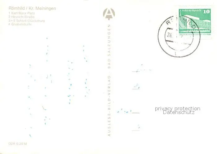 Roemhild Karl Marx Platz Heurich Strasse Schloss Gluecksburg Roemhild postalisch gelaufen nach 1965 Erhaltung siehe scans [KathaD81] Kathoren