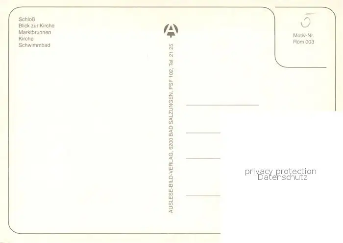 Roemhild Schloss Kirche Marktbrunnen Roemhild postalisch nicht gelaufen nach 1965 Erhaltung siehe scans [NatalD47] NataID47