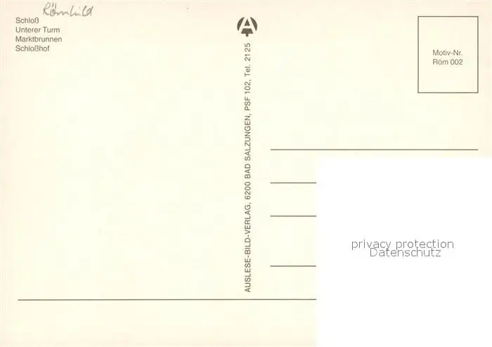 Roemhild Schloss Unterer Turm Marktbrunnen Kirche Schlosshof Wappen Roemhild postalisch nicht gelaufen nach 1965 Erhaltung siehe scans [FriedD77] Frierer