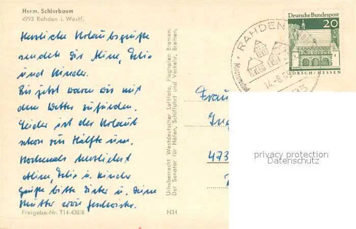 Rohdenhaus Fliegeraufnahme Rohdenhaus postalisch gelaufen 1969 Erhaltung siehe scans [FriedD77] Frierer
