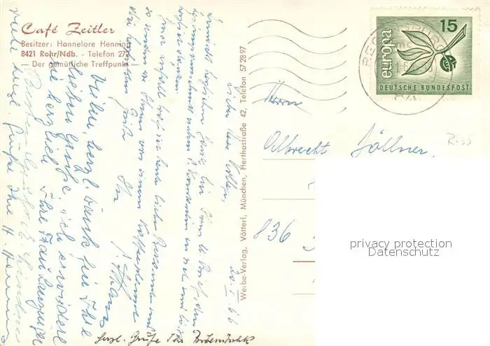 Rohr_Niederbayern Cafe Zeitler Ortsansicht mit Kirche Rohr Niederbayern postalisch gelaufen 1966 Erhaltung siehe scans [FriedD77] Frierer