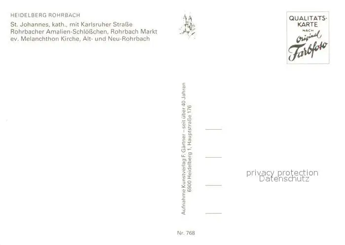 Rohrbach_Heidelberg Stadtpanorama Kirche Amalien Schloesschen Markt Neubausiedlung Rohrbach Heidelberg postalisch nicht gelaufen nach 1965 Erhaltung siehe scans [FriedD77] Frierer