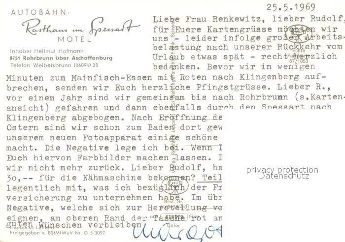 Rohrbrunn Autobahn Rasthaus im Spessart Motel Fliegeraufnahme Rohrbrunn postalisch nicht gelaufen 1969 Erhaltung siehe scans [FriedD77] Frierer