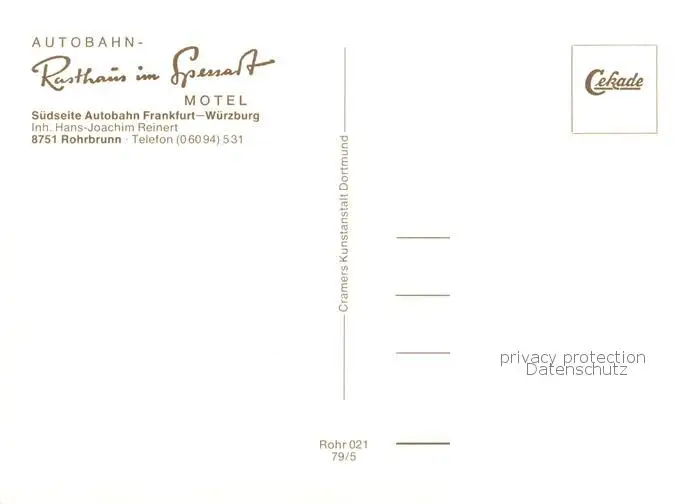 Rohrbrunn Autobahn Rasthaus im Spessart Rohrbrunn postalisch nicht gelaufen nach 1965 Erhaltung siehe scans [LiesaD40] LiesID40