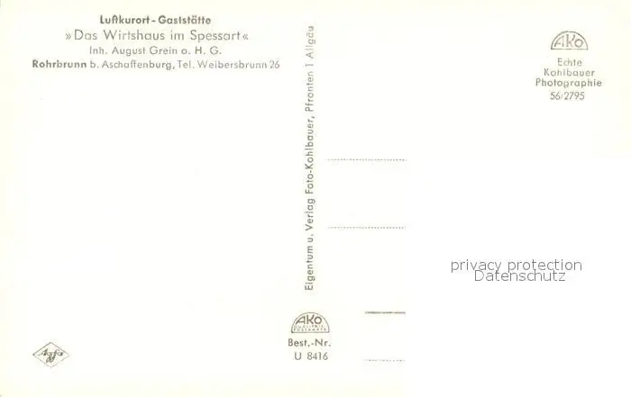 Rohrbrunn Kategorie Alte Ansichtskarten Postkarten bx52309 Rohrbrunn Luftkurort Gaststaette Das Wirtshaus im Spessart Rohrbrunn postalisch nicht gelaufen Erhaltung siehe scans [FriedD77]