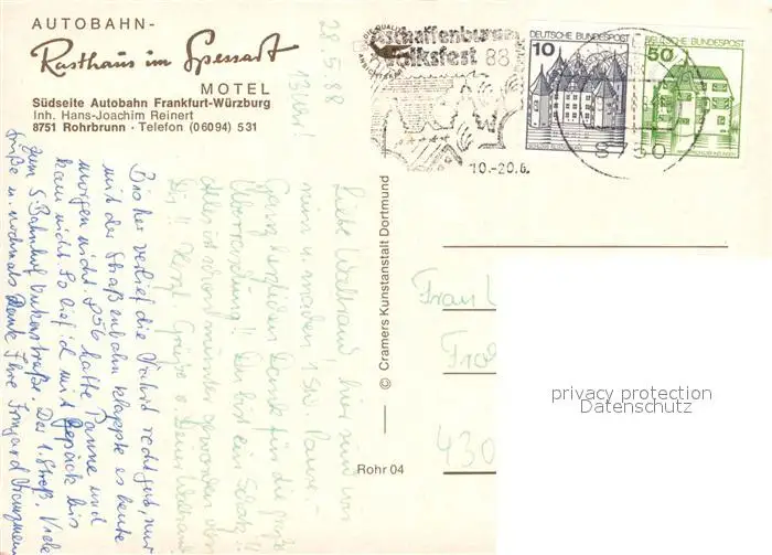 Rohrbrunn Kategorie Alte Ansichtskarten Postkarten bx62341 Rohrbrunn Rasthaus im Spessart Rohrbrunn postalisch gelaufen nach 1965 Erhaltung siehe scans [KathaD81]