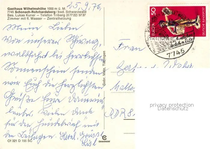 Rohrhardsberg_Schonach Gasthaus Wilhelmshoehe Gastraum postalisch gelaufen 1976 Erhaltung siehe scans [FriedD77] Frierer