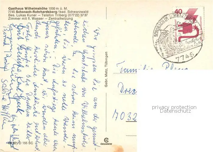 Rohrhardsberg_Schonach Gasthaus Wilhelmshoehe Gaststube postalisch gelaufen 1977 Erhaltung siehe scans [WerneD78] WernPID7