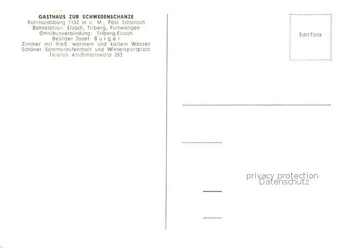 Rohrhardsberg_Schonach Schaenke im Gasthaus zur Schwedenschanze postalisch nicht gelaufen nach 1965 Erhaltung siehe scans [WerneD78] WernPID7