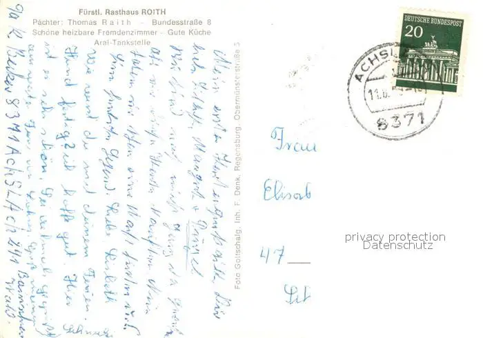 Roith_Achslach Kategorie Alte Ansichtskarten Postkarten bx89739 Roith_Achslach Fuerstliches Rasthaus Roith Gaststaette Restaurant postalisch gelaufen 1969 Erhaltung siehe scans [FriedD77]