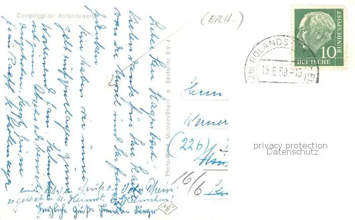 Rolandseck Campingplatz Rolandswerth Rolandseck postalisch gelaufen 1959 Erhaltung siehe scans [WerneD78] WernPID7